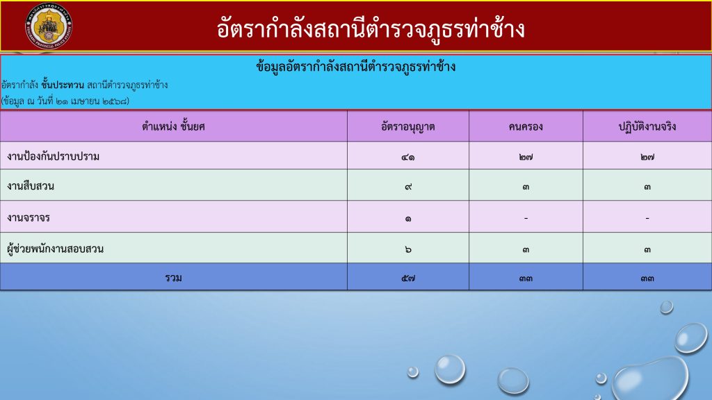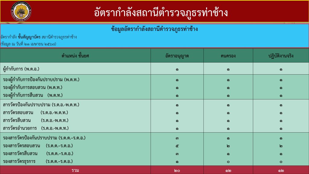 อัตรากำลังของสถานีตำรวจภูธรท่าช้าง