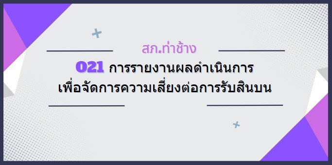 - O21 : การรายงานผลดำเนินการเพื่อจัดการความเสี่ยงต่อการรับสินบน