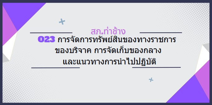 - O23 : การจัดการทรัพย์สินของทางราชการ ของบริจาค การจัดเก็บของกลาง และแนวทางการนำไปปฏิบัติ