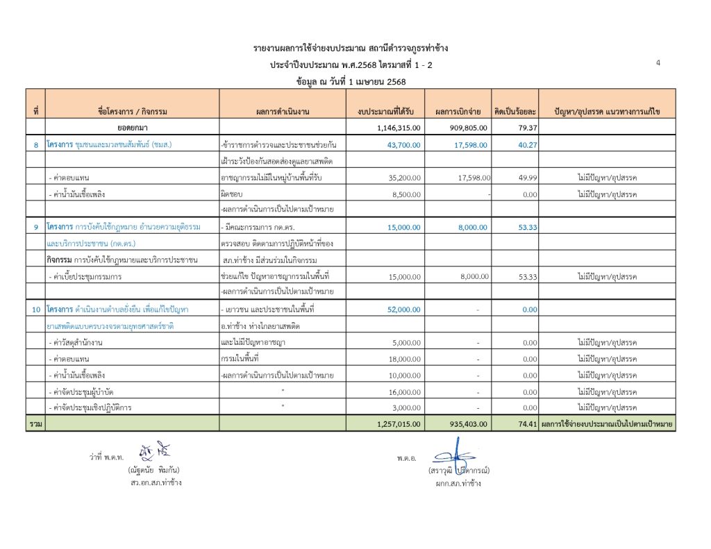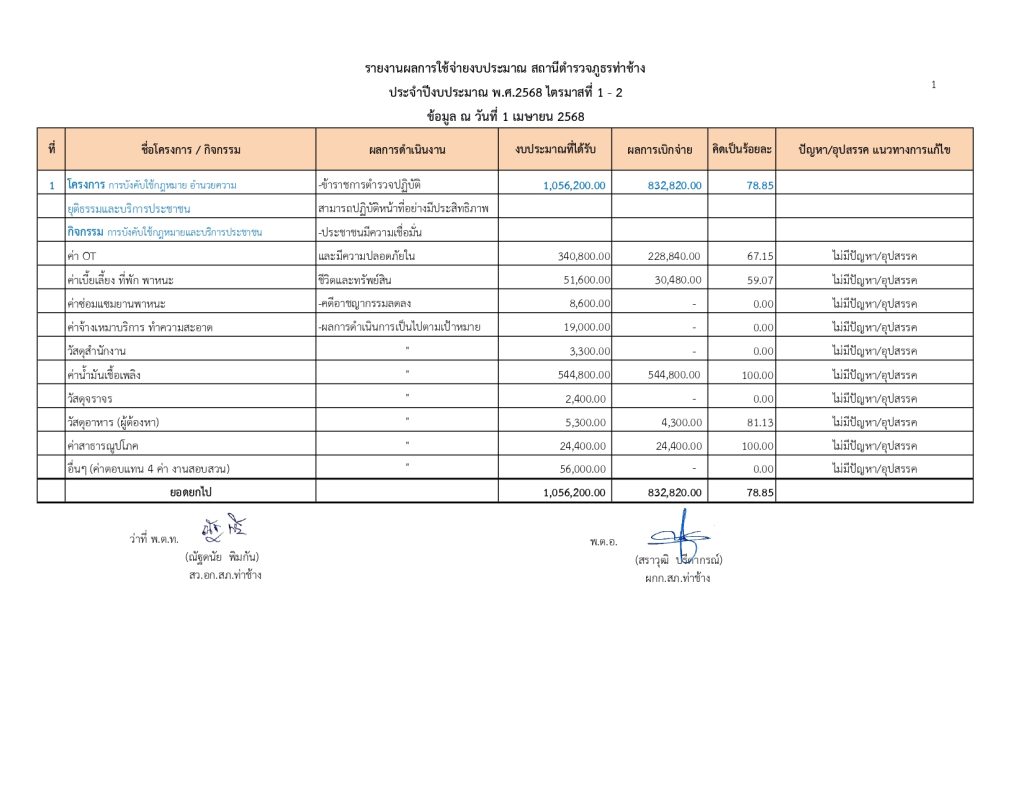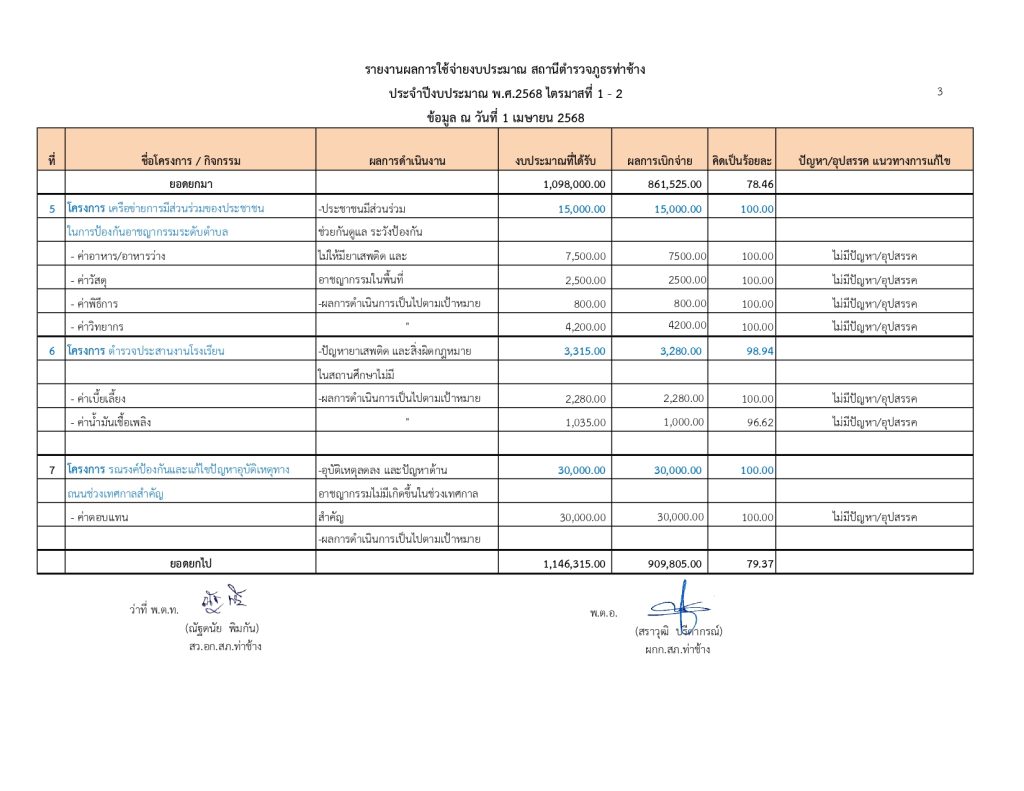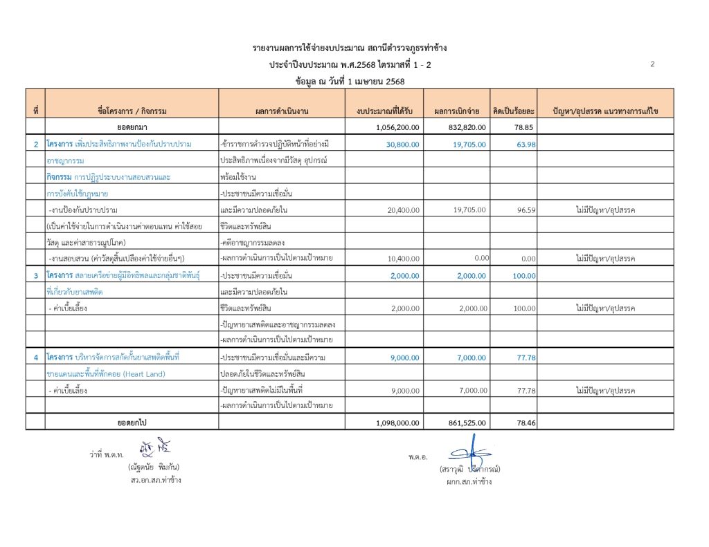 รายงานผลการใช้จ่ายงบประมาณ รอบ 6 เดือนแรก หรือ 2 ไตรมาส ของปีงบประมาณ พ.ศ.2568 (ตุลาคม 2567 – มีนาคม 2568)