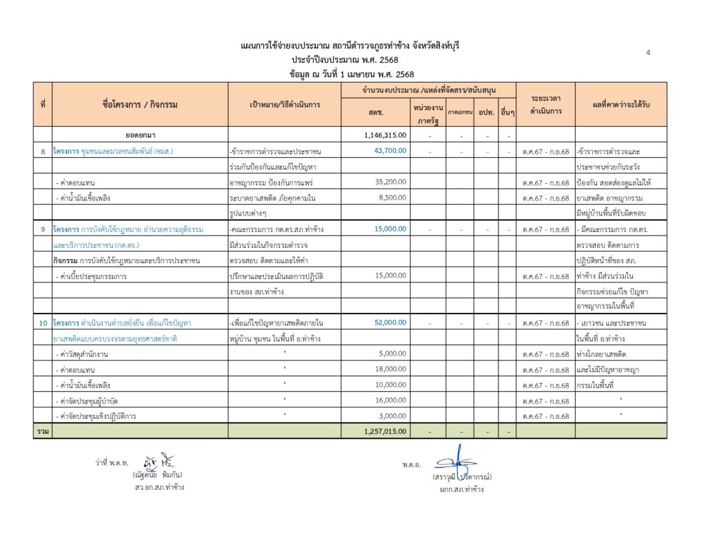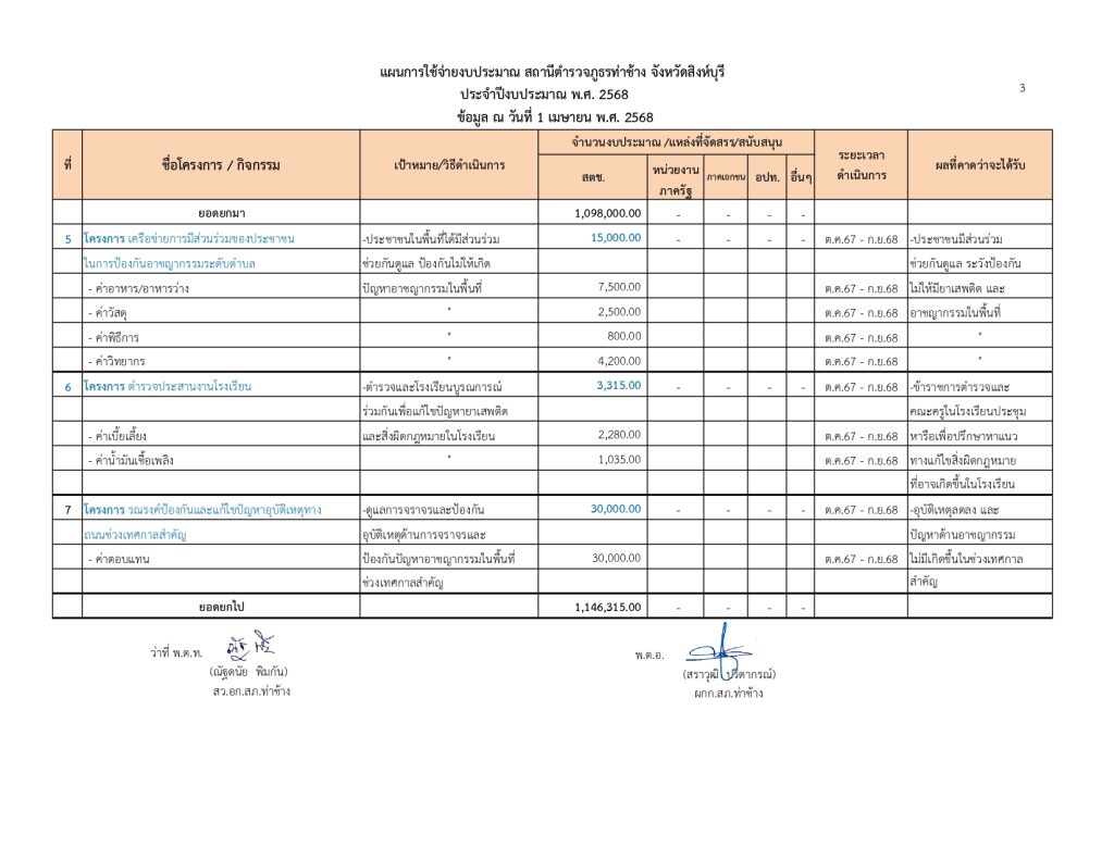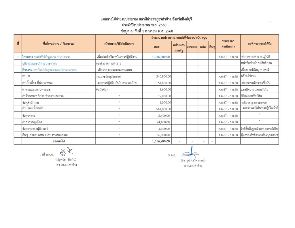 แผนการใช้จ่ายงบประมาณ ประจำปีงบประมาณ พ.ศ.2568
